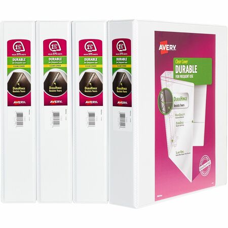 Avery® Durable View 3 Ring Binders, 1.5" Slant Rings, 4 White Binders