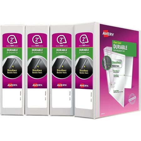 Avery® Durable View 3 Ring Binders, 2" Slant Rings, 4 White Binders