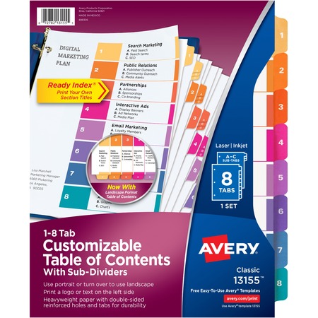 Wholesale Dividers & Tabs: Discounts on Avery Ready Index Customizable Table of Contents Dividers with Sub-Dividing Tabs AVE13155