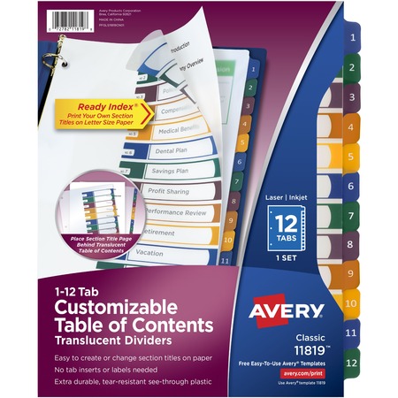 Wholesale Dividers & Tabs: Discounts on Avery Ready Index Customizable Table of Contents Translucent Dividers AVE11818