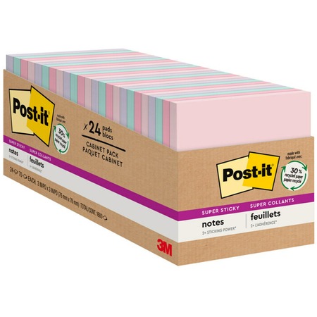 Post-it® Super Sticky Full Adhesive Notes, 3" x 3", Assorted Colors