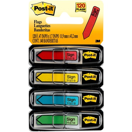 Post-it® Message Flags, 1/2", "Sign Here", Assorted Colors