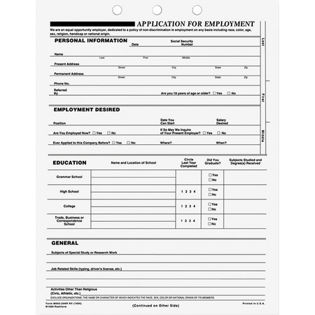 Rediform Applications for Employment