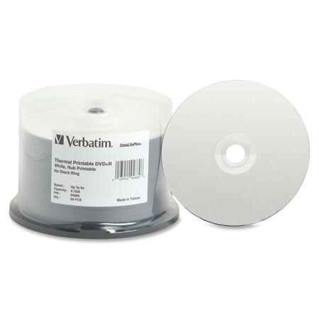 Verbatim DVD+R 4.7GB 16X DataLifePlus White Inkjet Printable, Hub Printable - 50pk Spindle