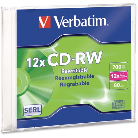 Verbatim CD-RW 700MB 4X-12X High Speed with Branded Surface - 1pk Slim Case