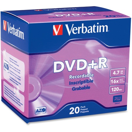 Verbatim AZO DVD+R 4.7GB 16X with Branded Surface - 20pk Slim Case