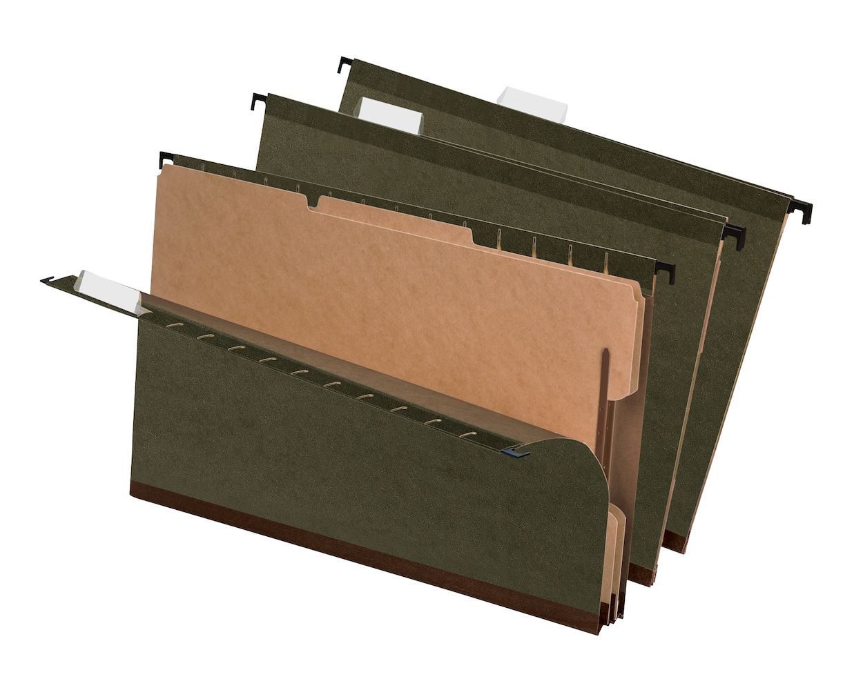 Pendaflex Hanging File - With Dividers - Surehook 8.5" x 14" Sheet Size , 2 Divider, 2" Fasteners (Dividers), Std Green, Legal, 10/Bx