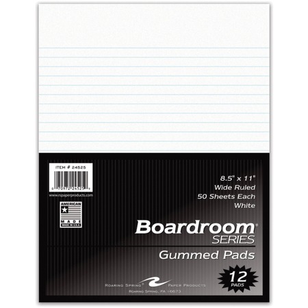 Roaring Spring Boardroom Gum Pad Wide Ruled 8.5x11 WHT 12PK