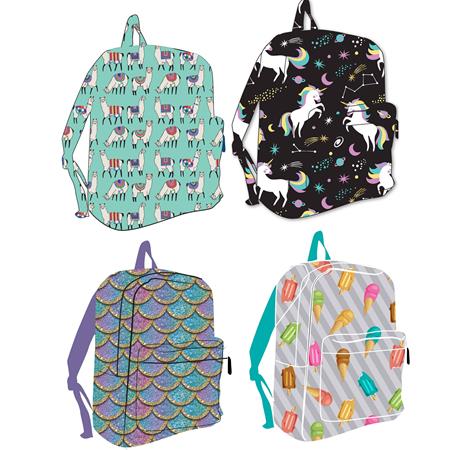 BULK Carton 17" BACKPACK IN ASSORTED "WHIMSY" PRINTS - MINIMUM ORDER 1 CASE PACK 24