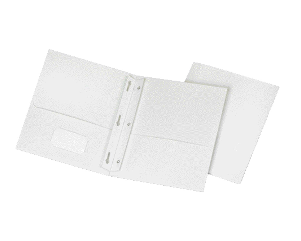 School Grade Two Pocket Portfolio, Fasteners, White, 25 Pack