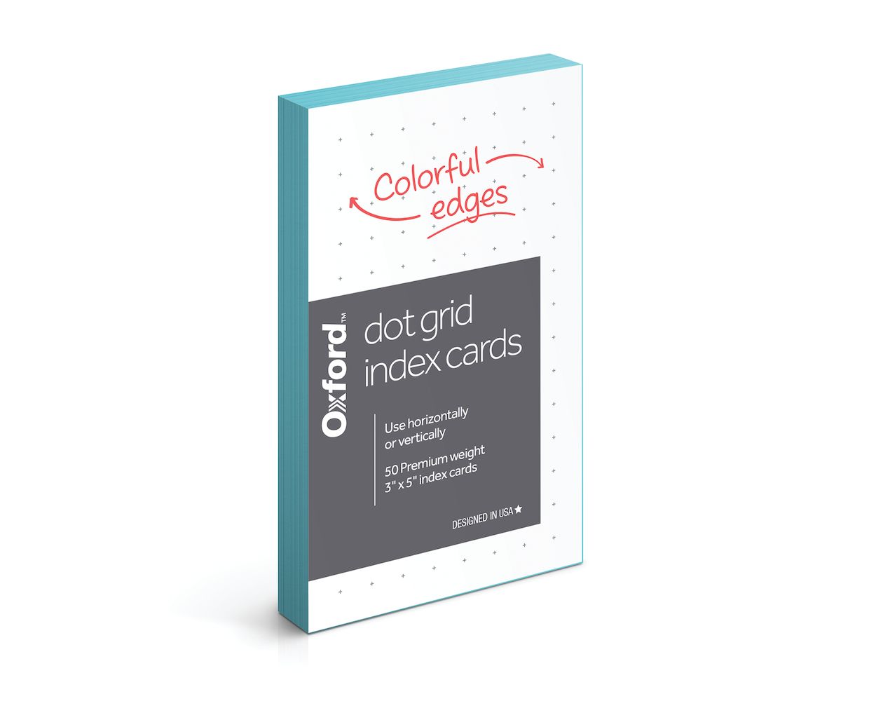 Oxford Dot Grid Index Cards, 3" x 5", Shoreline Blue Edges, 50 Per Pack