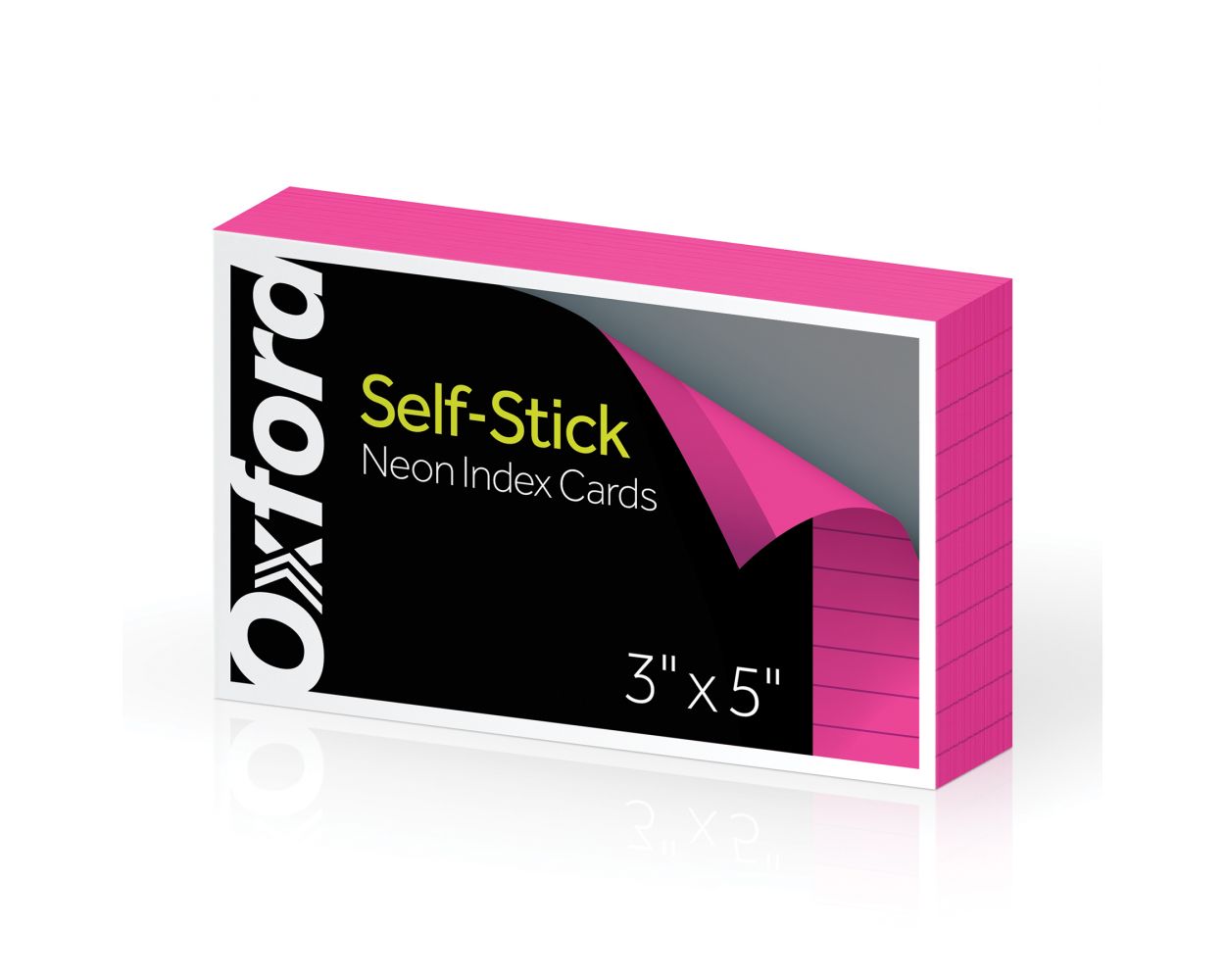 Oxford Self-Stick Index Cards, 3" x 5", Ruled, Neon Pink, 100 Per Pack