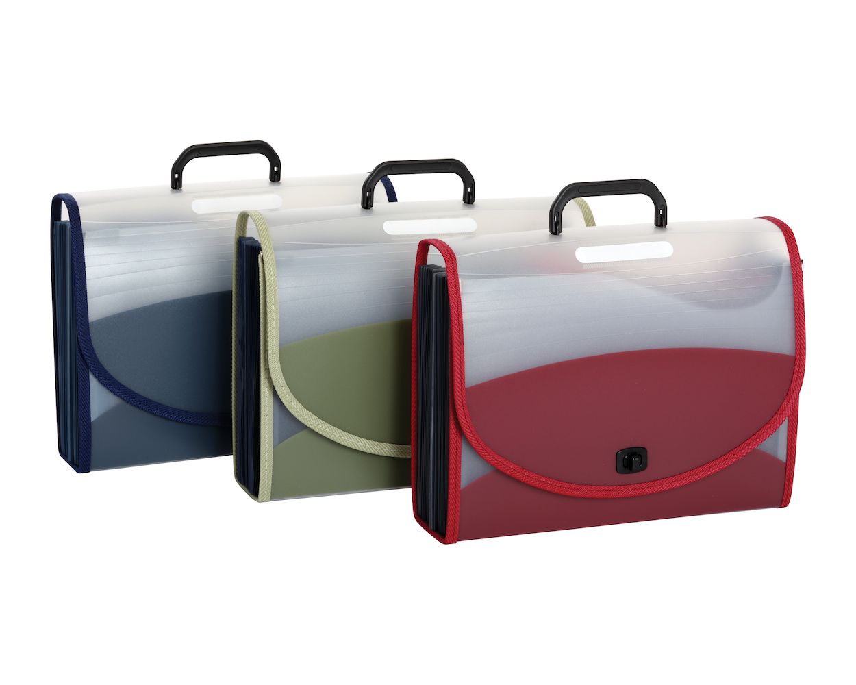 7 pkt poly expanding file, clear with color gusset, asst, letter in pdq