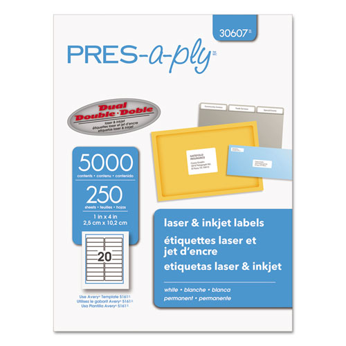 Laser Address Labels, 1 x 4, White, 5000/Box