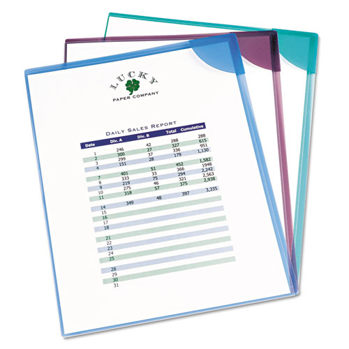 Corner Lock Document Sleeves, Letter, Polypropylene, Assorted, 6/Pack
