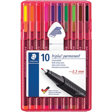 Staedtler 10 Triplus Permanent Multi-surface Pens