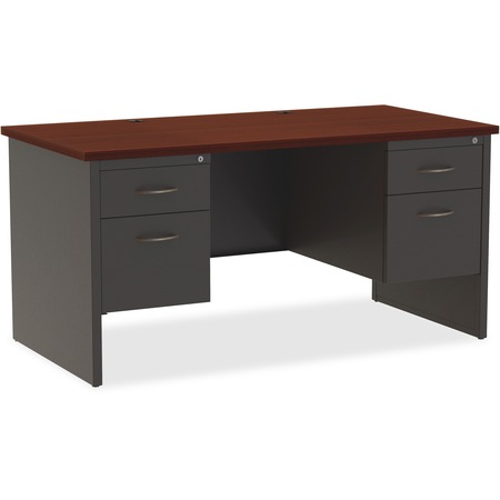 Lorell Mahogany Laminate/Charcoal Modular Desk Series Pedestal Desk - 2-Drawer