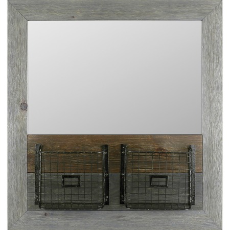 Lorell Metal Bracket Basket Pine Wood Mirror