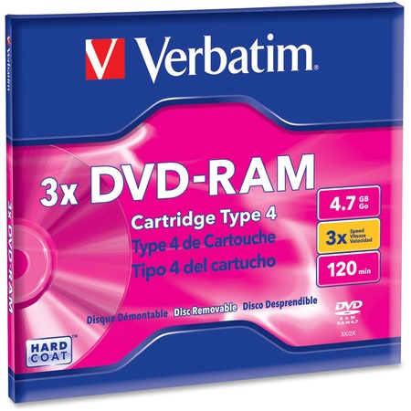 Verbatim DVD-RAM 4.7GB 3X Single Sided, Type 4 with Branded Surface - 1pk with Cartridge