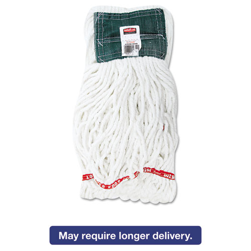 Web Foot Wet Mop, Cotton/Synthetic, White, Medium, 1" Green Headband, 6/Carton