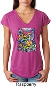 Ladies Cat Shirt Love Cat Tri Blend V-neck