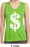 Ladies Distressed Dollar Sign Sleeveless Moisture Wicking Tee T-Shirt