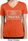 Ladies Distressed Ford Trucks Moisture Wicking V-neck Shirt