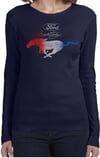 Ladies Ford Mustang Red White and Blue Long Sleeve