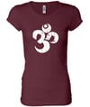 Ladies Yoga Shirt White Distressed OM Scoop Neck Tee T-Shirt