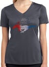 Ladies Ford Tee Mustang Red White and Blue Dry Wicking V-neck
