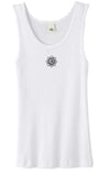 Ladies Yoga Tanktop Lotus OM Patch Small Print White Organic Tank Top