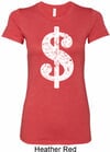 Ladies Funny Shirt Distressed Dollar Sign Longer Length Tee T-Shirt