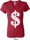 Ladies Funny Shirt Distressed Dollar Sign V-neck Tee T-Shirt
