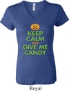 Ladies Halloween Shirt Keep Calm and Give Me Candy V-neck Tee T-Shirt
