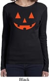 Ladies Halloween Shirt Orange Jack O Lantern Long Sleeve Tee T-Shirt
