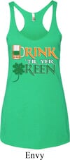 Ladies Irish Shirt Drink Til Yer Green Tri Blend Racerback Tank Top