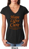 Ladies Leukemia Cancer Hope Love Cure Dry Wicking V-neck