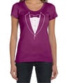 Ladies Shirt Basic White Tuxedo Tee T-Shirt