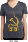 Ladies Shirt CCCP Distressed Moisture Wicking V-neck Tee
