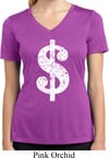 Ladies Shirt Distressed Dollar Sign Moisture Wicking V-neck T-Shirt