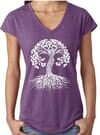 Ladies White Celtic Tree of Life Yoga V-neck Tee - Heather Purple, Large