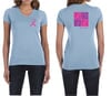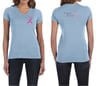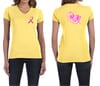 Ladies Shirt Pink Ribbon Heart Front & Back Print V-neck Tee T-Shirt