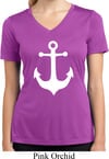 Ladies Shirt White Anchor Moisture Wicking V-neck Tee