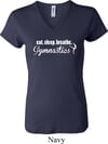 Ladies Shirt White Eat Sleep Breathe Gymnastics V-neck Tee T-Shirt