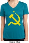 Ladies Shirt Yellow Hammer And Sickle Moisture Wicking V-neck Tee