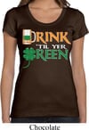 Ladies St Patrick's Day Shirt Drink Til Yer Green Scoop Neck Tee