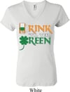 Ladies St Patrick's Day Shirt Drink Til Yer Green V-neck Tee T-Shirt