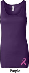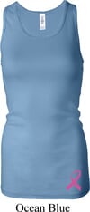Ladies Tanktop Pink Ribbon Bottom Print Longer Length Tank Top