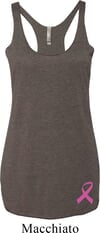 Ladies Tanktop Pink Ribbon Bottom Print Longer Length Racerback Tank