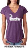 Ladies The Godmother White Print Tri Blend V-neck